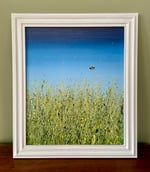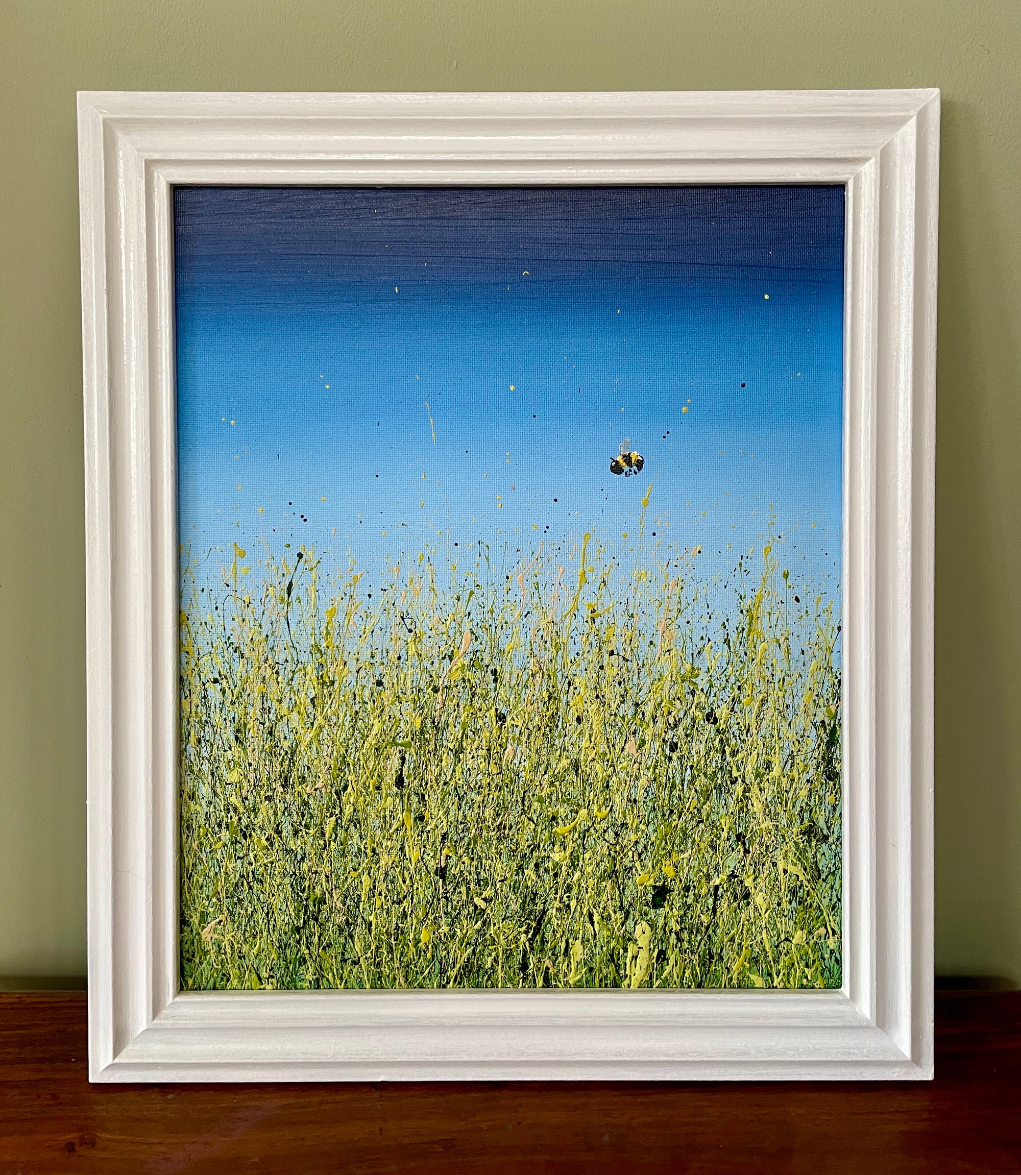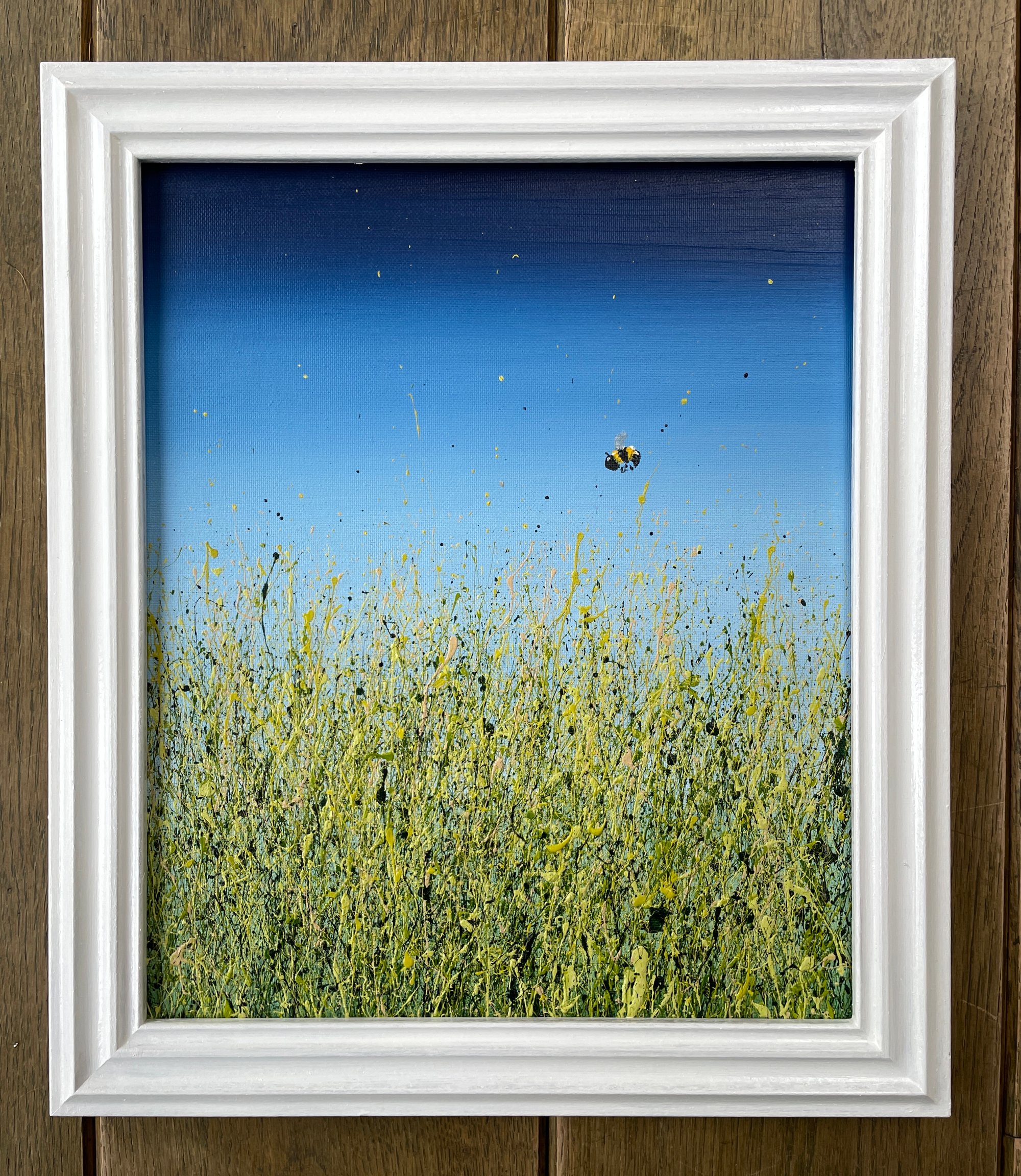 Mounted original acrylic painting on canvas in white wooden frame which measures 37cm x 32cm. Fixtures are fitted, ready for you to hang your painting immediately.